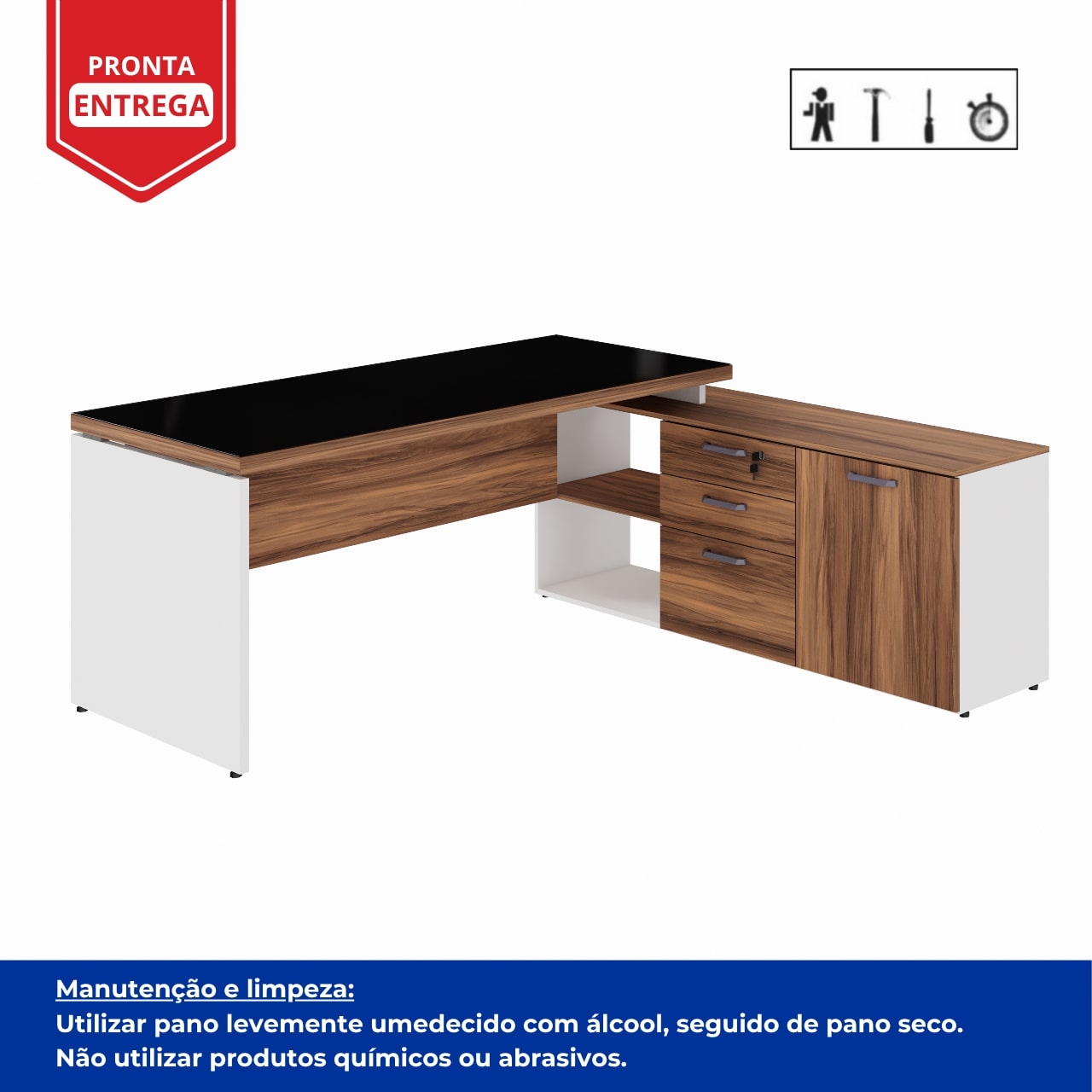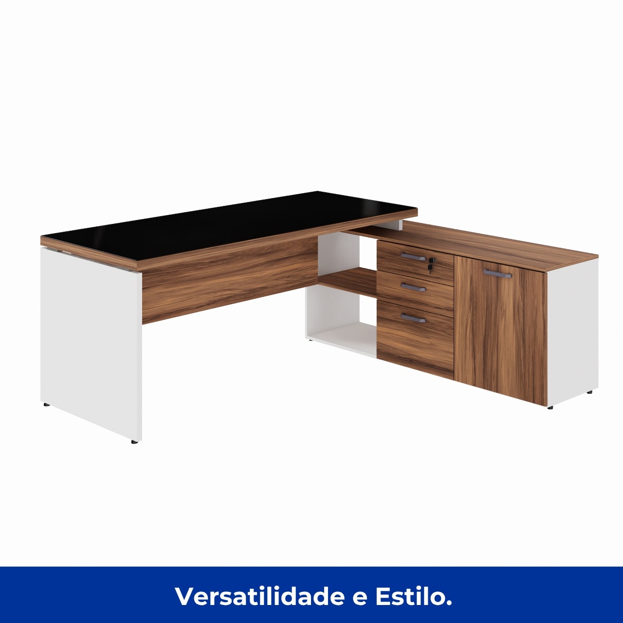 Formato: Estação de trabalho em formato “L”, ideal para ambientes executivos