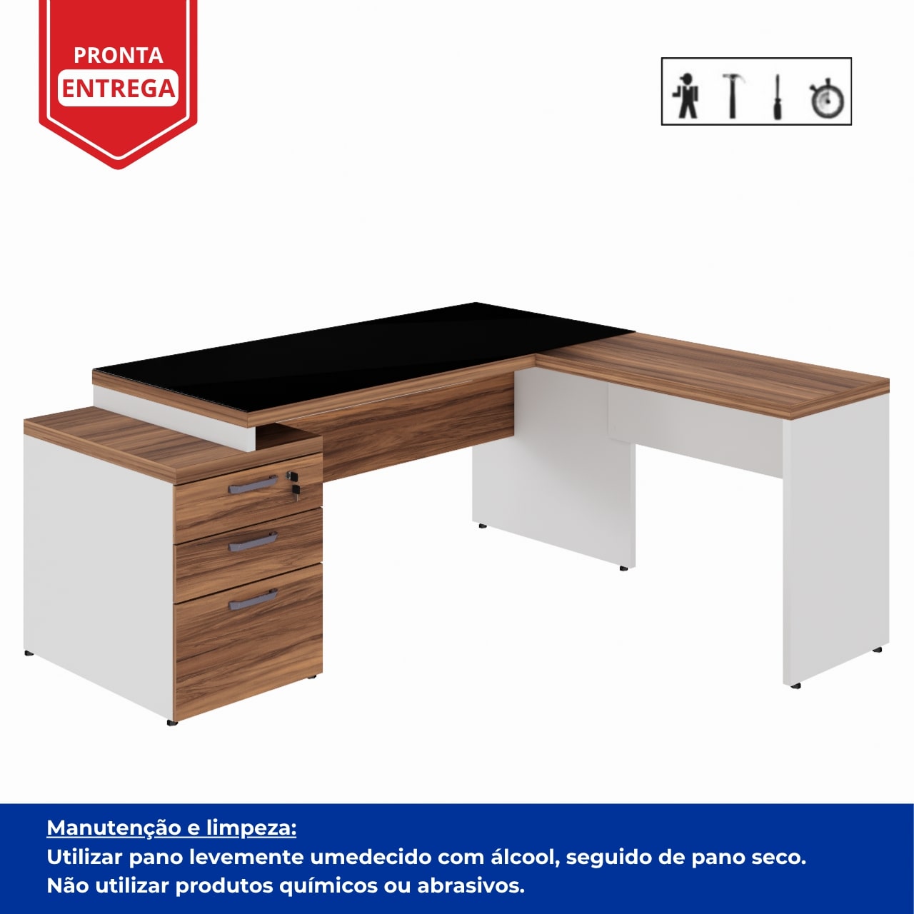 Conteúdo da Embalagem: Mesa Reta 1,92x70cm / Gaveteiro Pedestal