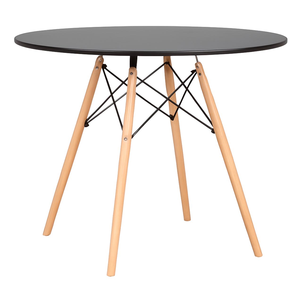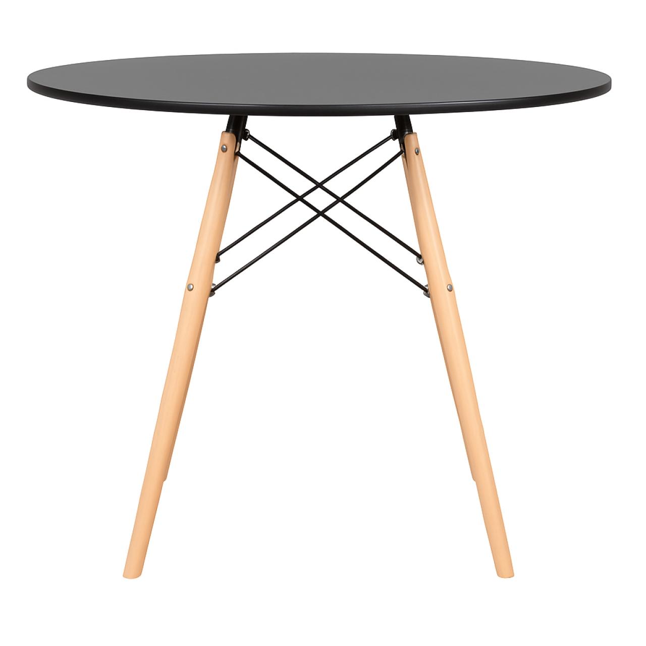 Mesa Redonda Eiffel – Tampo Preto Fosco e Base Madeira