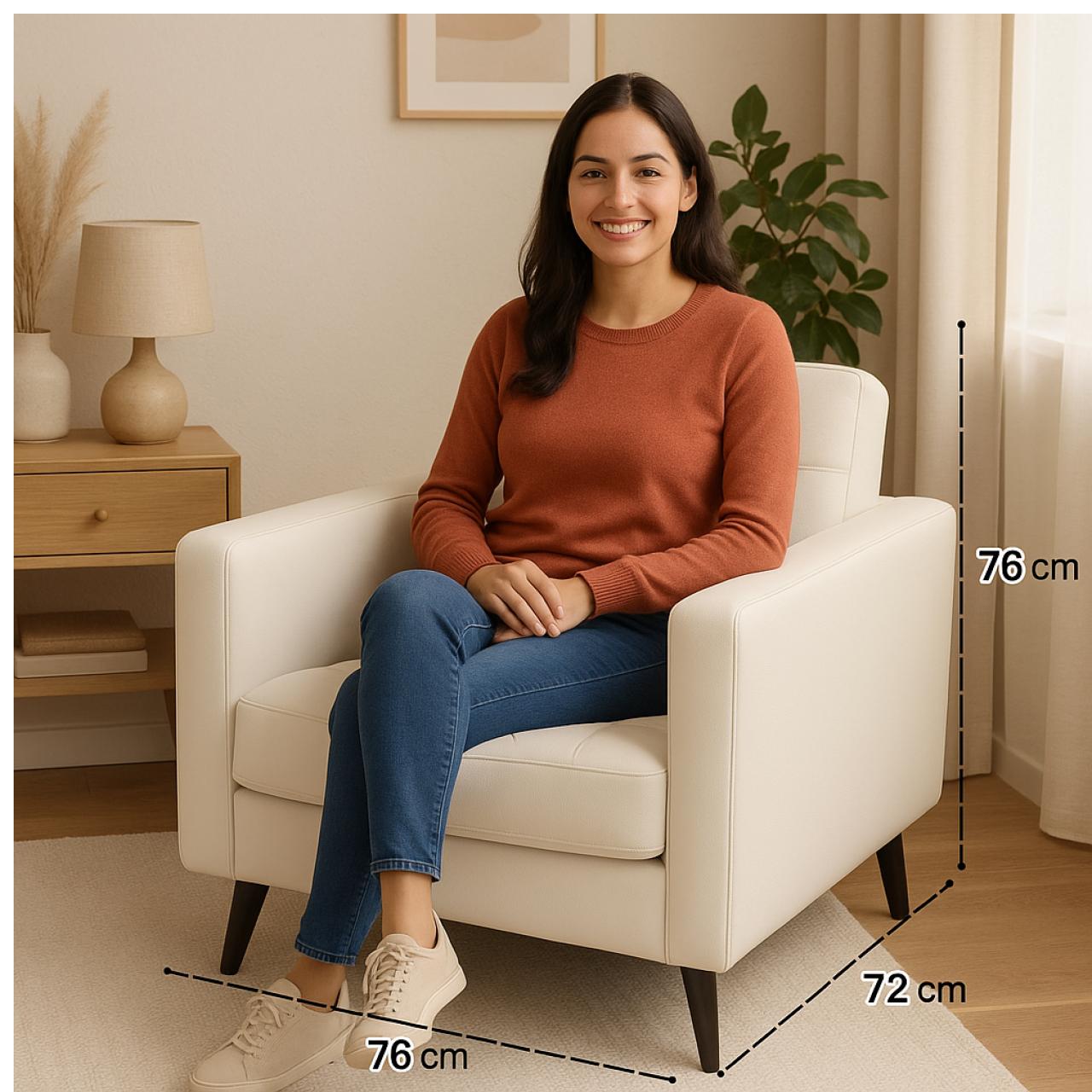 Poltrona com design clean e contemporâneo, ideal para salas de estar, recepções ou ambientes corporativos. Combina conforto, elegância e durabilidade em uma estrutura compacta.