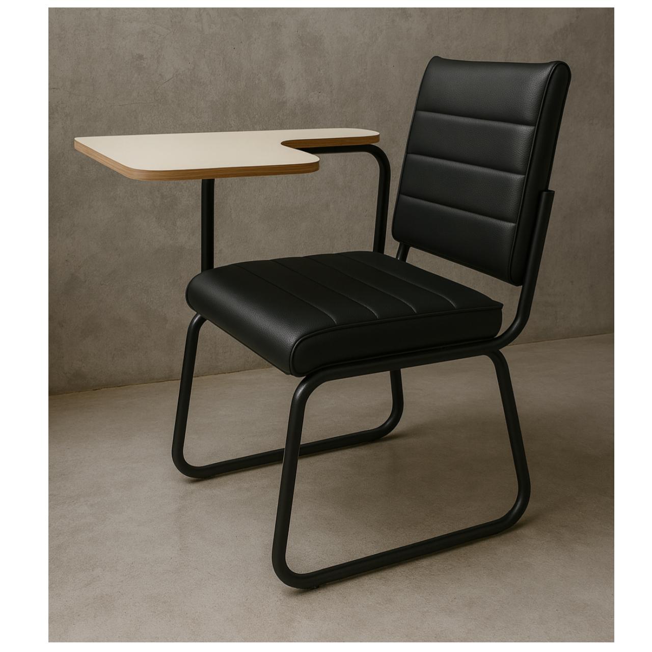 A cadeira escolar com prancheta lateral foi desenvolvida para proporcionar praticidade, conforto e resistência no uso diário em salas de aula, treinamentos, auditórios e ambientes educacionais em geral. Seu design moderno, com linhas retas e estofamento acolchoado, garante ergonomia e durabilidade, atendendo às necessidades de estudantes e professores.